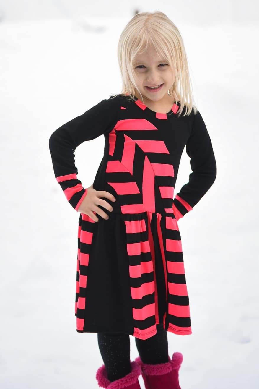 The Rainbow Falls Dress will put a little brightness in the coldest of days. This dress has a generous size range from preemie to size 20 teen. There are also tons of options to carry you from season to season with one pattern.