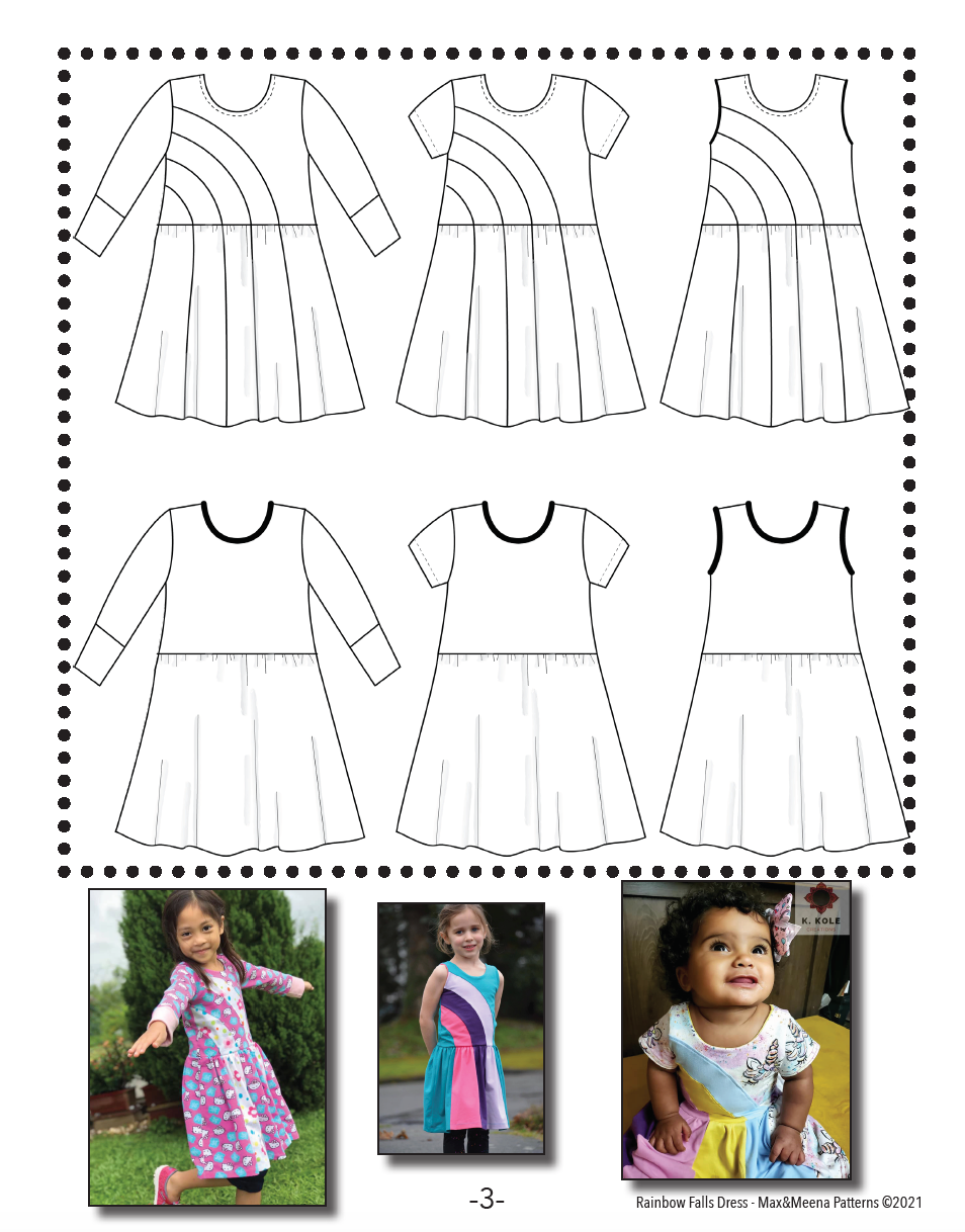 Like all of Max and Meena’s patterns, The Rainbow Falls Dress has been through extensive testing and this is a pattern you can trust to give you awesome results. The layering feature makes printing easy and efficient and the detailed tutorial will guide you through each step of construction.